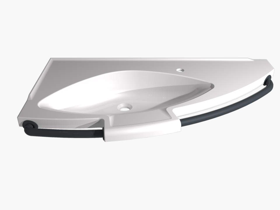 Bano Hygienic washbasin is designed to optimize the Bano Concept, increasing accessibility and safety for the user. Due to the asymmetrical shape, the basins can be placed near a Bano Turnable Toilet, making the interaction between the toilet and washbasin optimal. The proximity to the toilet reduces the need for multiple transfers, thereby decreasing the number of accidents for the user and strain injuries among caregivers.