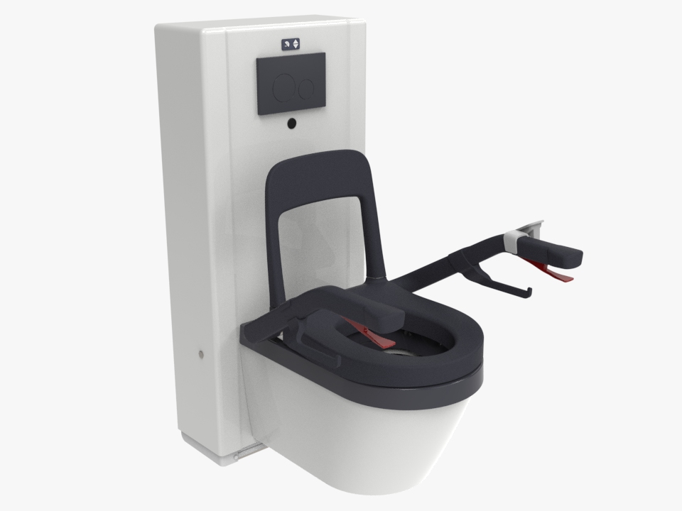 Mobility-impaired users will be dependent on raising or lower the toilet, so that their legs are in contact with the floor and they can rotate the seat themselves safely. The toilet can be lowered and raised by 200 mm, and has a lifting capacity of 300 kg. The electrical height adjustment function is easily operated from a remote control or directly on the cistern. The control system for the height adjustment is integrated into the wall module. The module is flexible enough to be installed in existing bathrooms in which floor-mounted or wall-mounted toilets were previously installed.